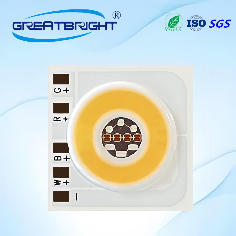 核心特点: 将四种颜色的LED芯片直接封装在一个基板上,实现高密度、